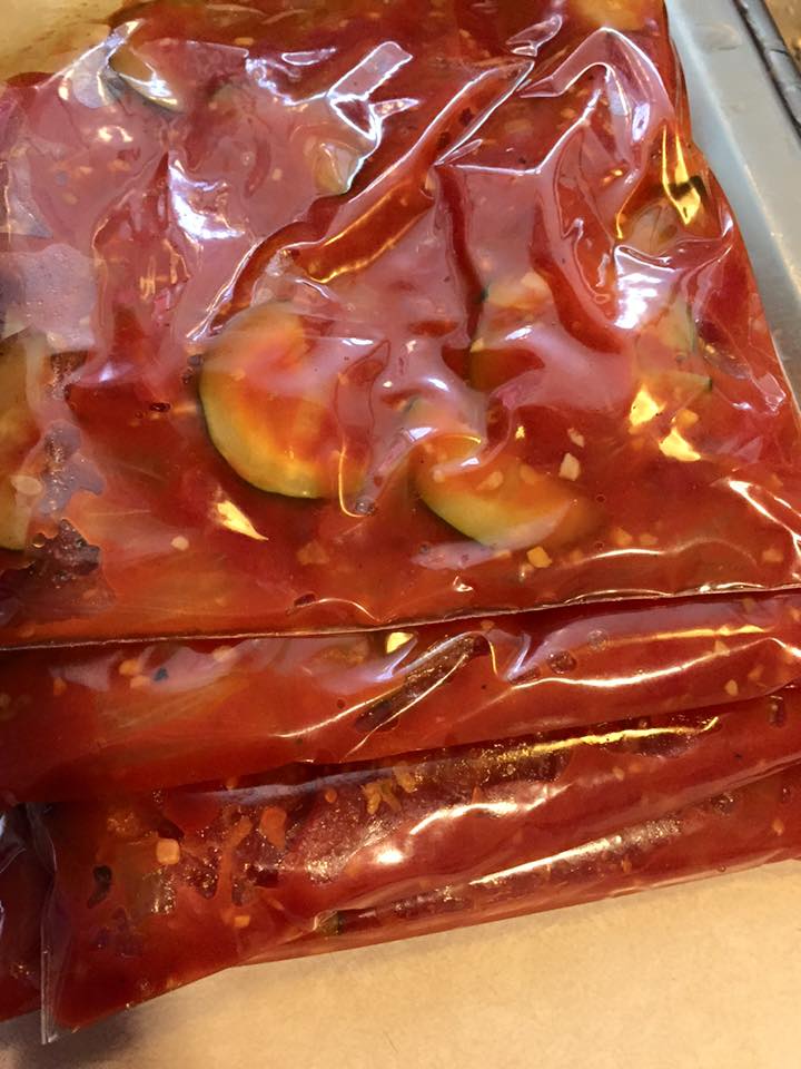 | Portioned out Fixate Tomato Sauce- ready to freeze! |